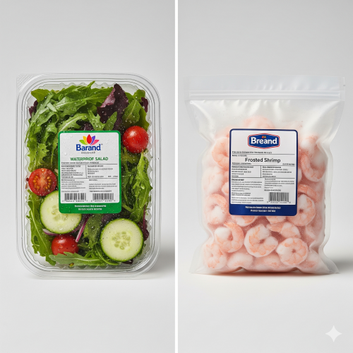 สิ่งที่ต้องรับมือ: นี่คือ "สภาวะสุดโหด" เพราะนอกจากความชื้นมหาศาลแล้ว อุณหภูมิที่ติดลบจะทำให้กาวสติ๊กเกอร์ทั่วไปแข็งตัว สูญเสียความเหนียว (Tack) และหลุดร่อนหลุดร่วงออกจากถุงหรือกล่องในที่สุด นอกจากนี้ ตอนนำออกมาละลายน้ำแข็ง (Thawing) จะมีน้ำเกาะจำนวนมาก